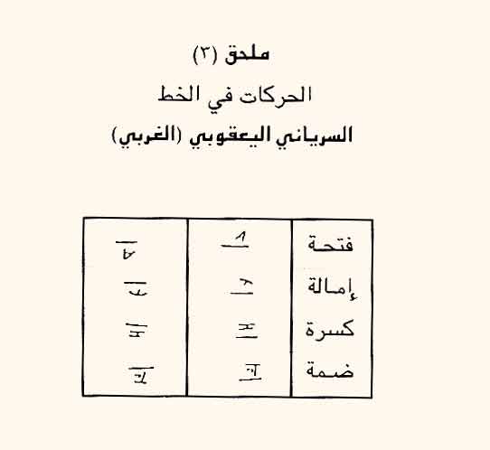 ملحق (3) الحركات في الخط السرياني اليعقوبي (الغربي)